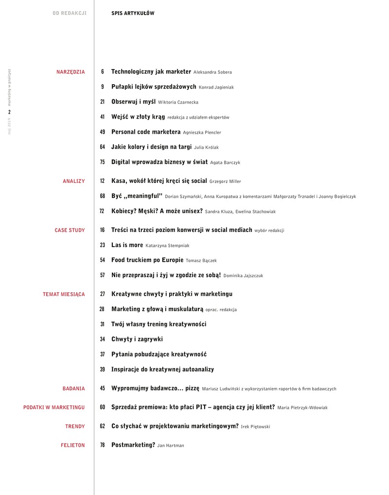 Spis treści wydania drukowanego MwP 5/2019